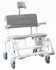 Kombinert dusj- og toalettstol med drivhjul for bariatriske brukere.
